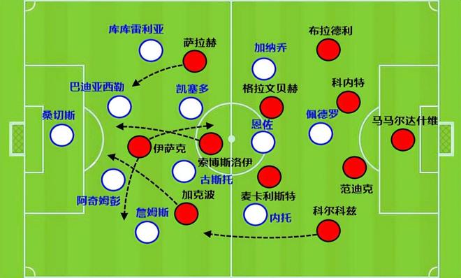 这次也是一样的道理,边路位置伊萨克起速,被切尔西球员包围后,他传给加克波。后者再加速打穿了切尔西的侧翼,可惜中路索博斯洛伊没能把握住机会。